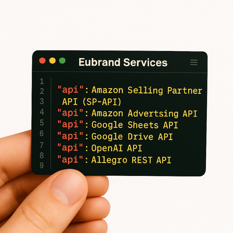 Zautomatyzowane zarządzanie ofertą. Integrujemy systemy z API Amazon, wgrywamy i aktualizujemy dane bez ręcznego klikania.